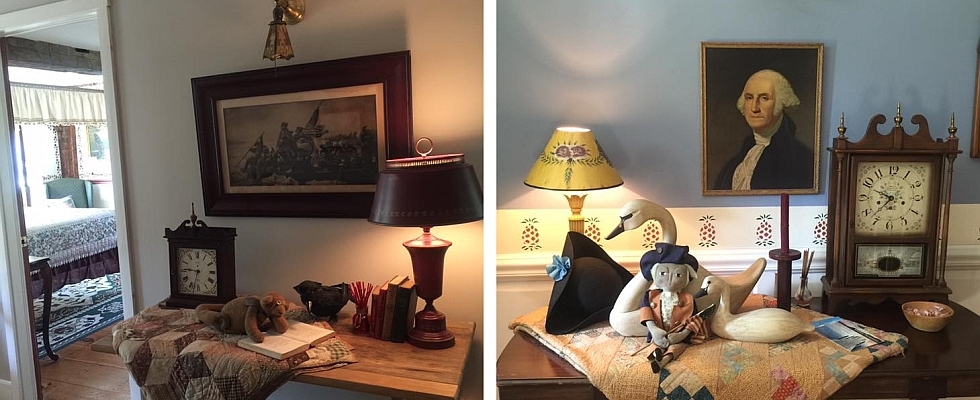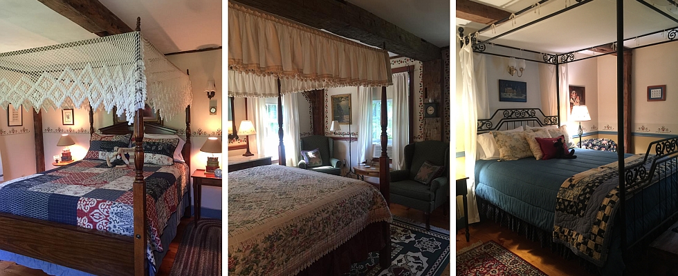 Spacious guest rooms feature exposed beams, hand-stenciled wall trim and queen size canopy beds with country quilts. Each room has its own distinctive antiques, artwork and full private bath.
